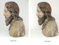 Abb. 1: Hl. Jacobus, Vergleich Vor- und Endzustand, Vorderseite, Gesamtansicht.